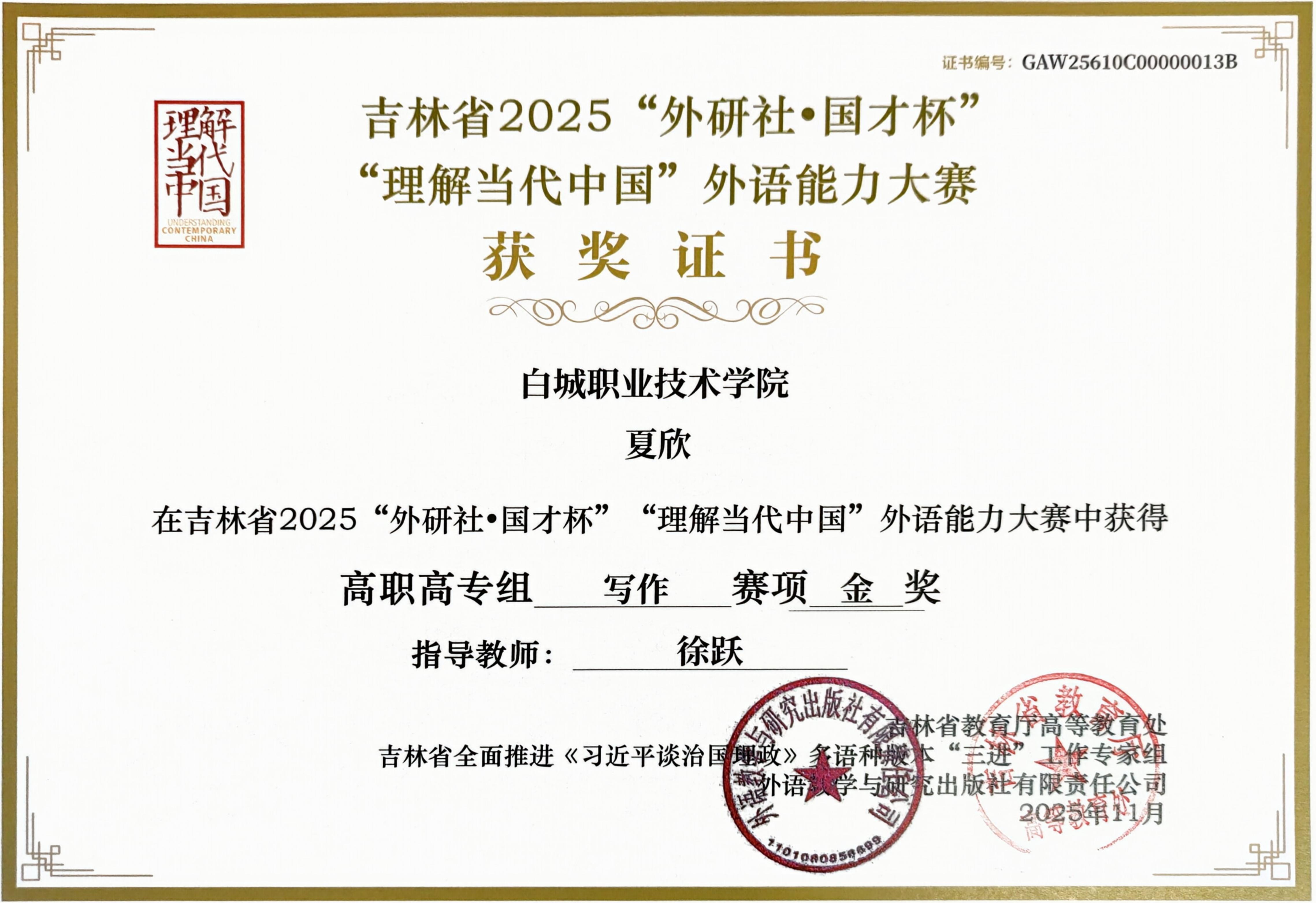 近日,2025“外研社·国才杯”“理解当代中国”吉林省外语能力大赛落下帷幕。小学教育学院学子不负众望,在高职高专组赛事中喜报频传。