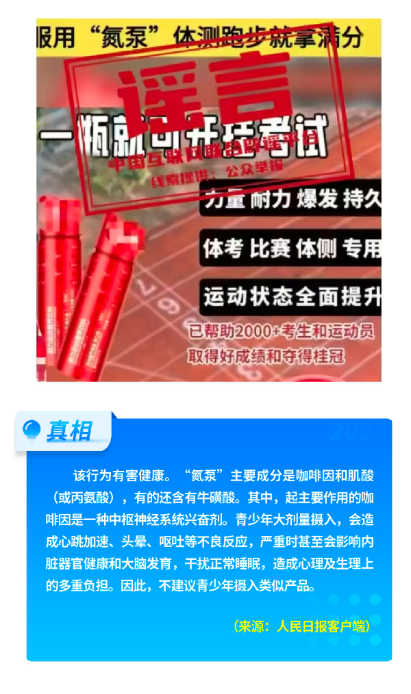 谣言2 中考体测使用“氮泵”成绩会更好?