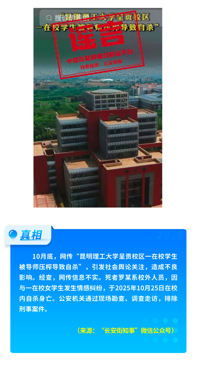 谣言2 云南昆明一在校大学生被导师压榨导致自杀?