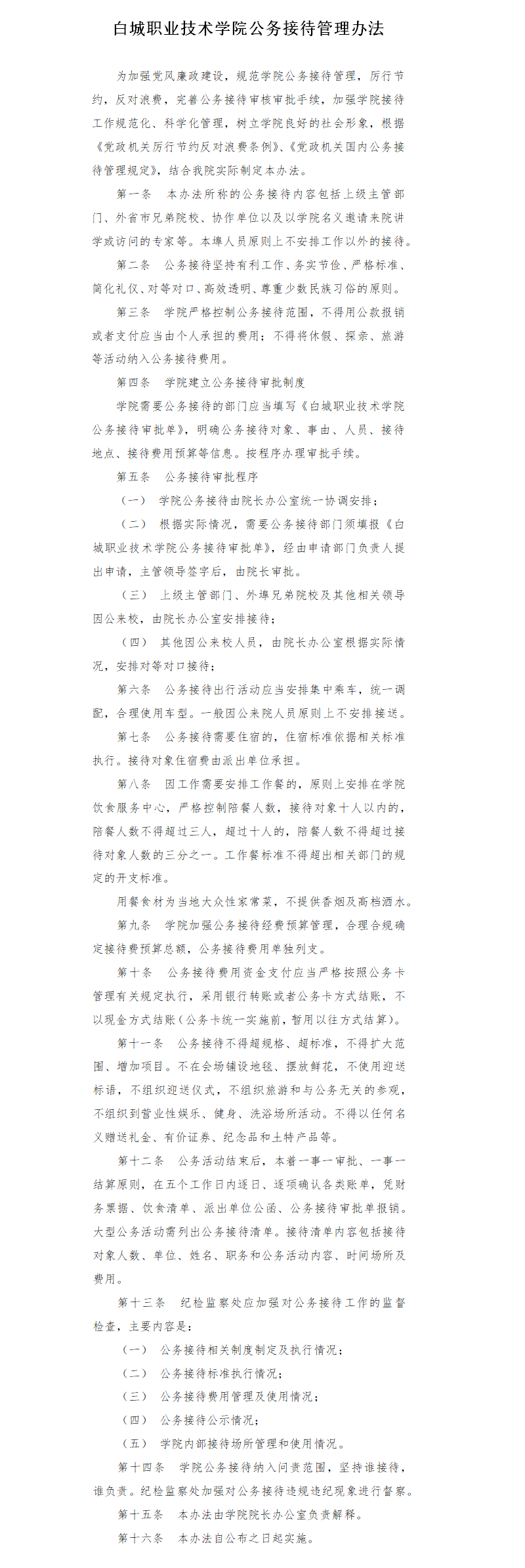 白城职业技术学院公务接待管理办法