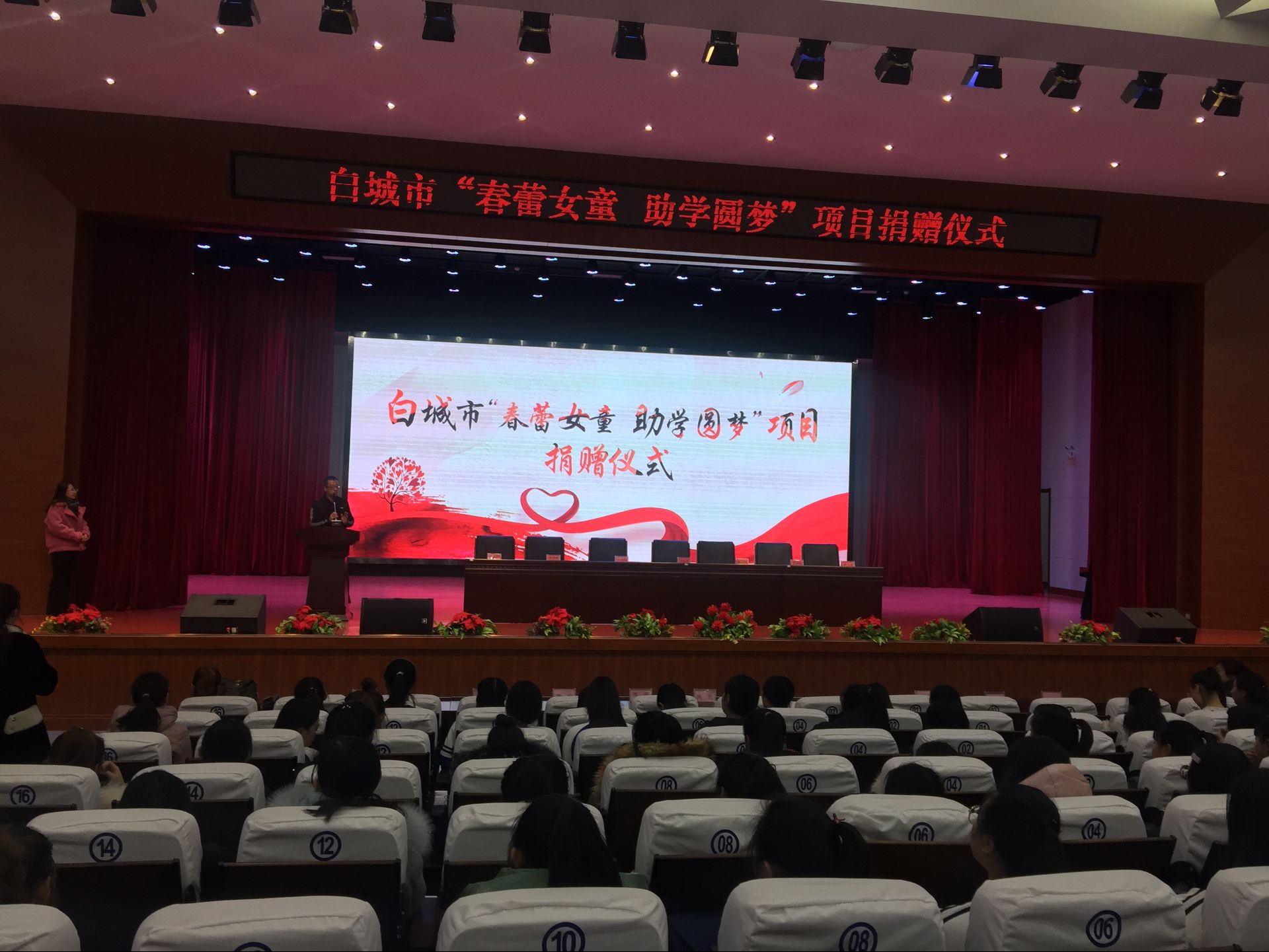 白城市“春蕾女童,助学圆梦”项目捐赠仪式在我院大学生活动中心举行,我系18级学前教育专业春蕾班72名学生参加会议。市妇联向我院春蕾生捐助人民币拾捌万伍仟伍佰元整,还向学生捐赠书本。通过捐助活动让春蕾班学生感受到党组织的关爱,内心倍感温暖。