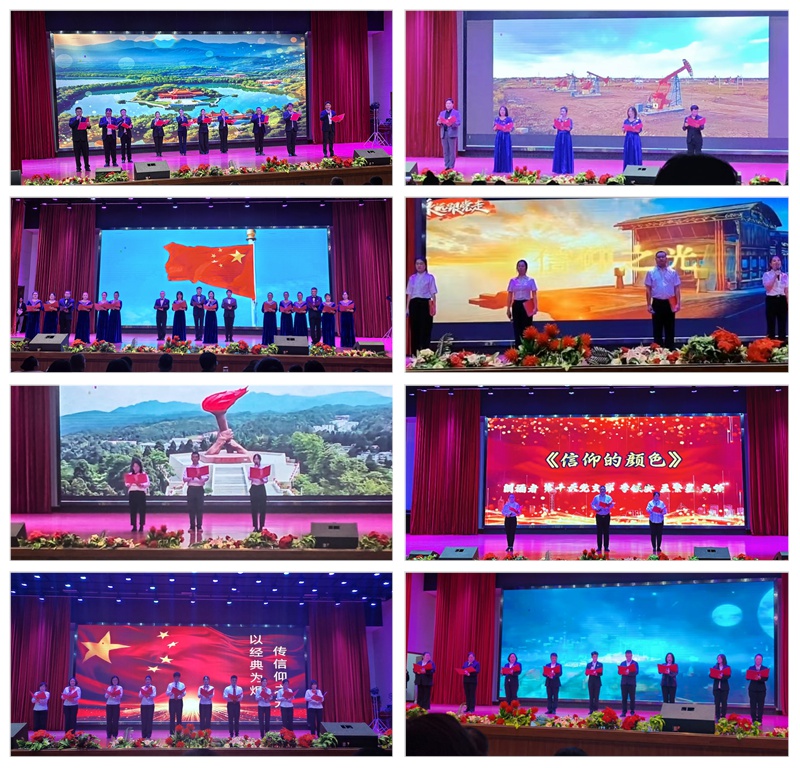 比赛在庄严的国歌声中拉开帷幕。活动现场,选手们精神饱满,他们用真挚的情感、激昂的语调朗诵了一篇篇红色经典作品。从气势磅礴的《中华颂》到饱含深情的《如果信仰有颜色》;从激情澎湃的《红船从南湖起航》到感人至深的《这盛世如您所愿》,彰显了红色经典的独特魅力。作品《百年回响红色觉醒》更是给在场师生留下了深刻印象。30名学生党员及入党积极分子参与表演,他们以青春之名发出爱党爱国的铿锵誓言。