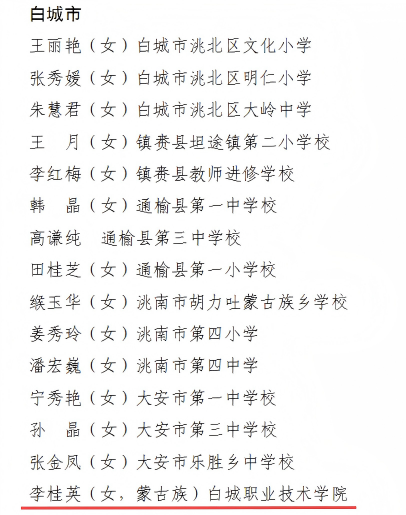 近日,吉林省人力资源和社会保障厅、吉林省教育厅发布《关于组织开展吉林省教育系统先进集体、先进工作者和优秀教师评选表彰工作的通知》,我院李桂英同志荣获吉林省优秀教师表彰。
